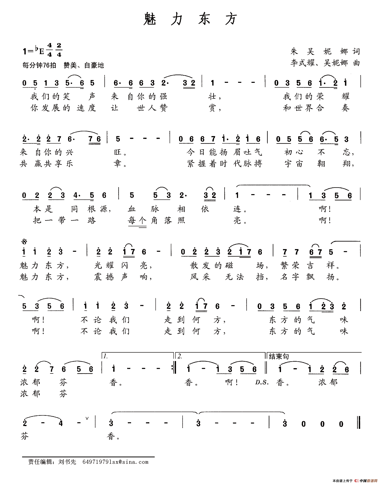 关于《魅力东方》曲谱的评论