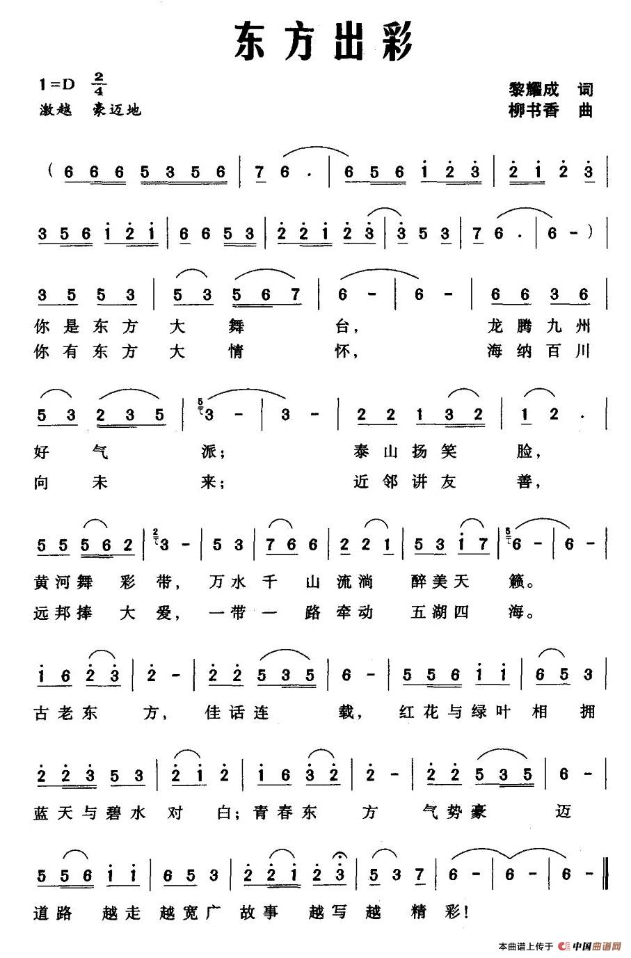 关于《东方出彩》曲谱的评论