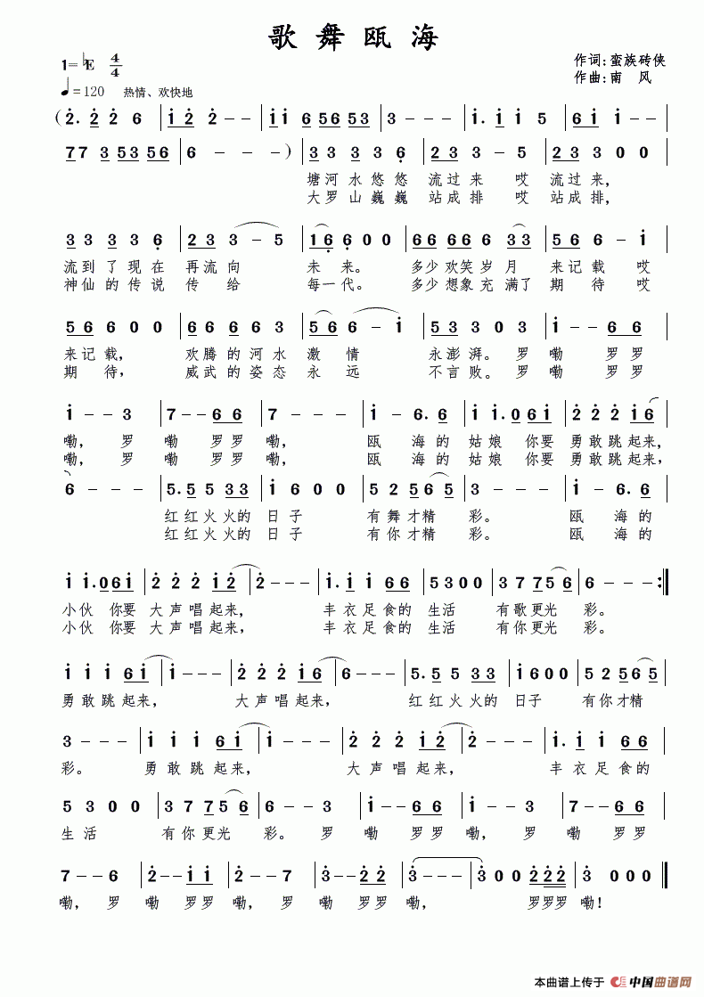 关于《歌舞瓯海》曲谱的评论