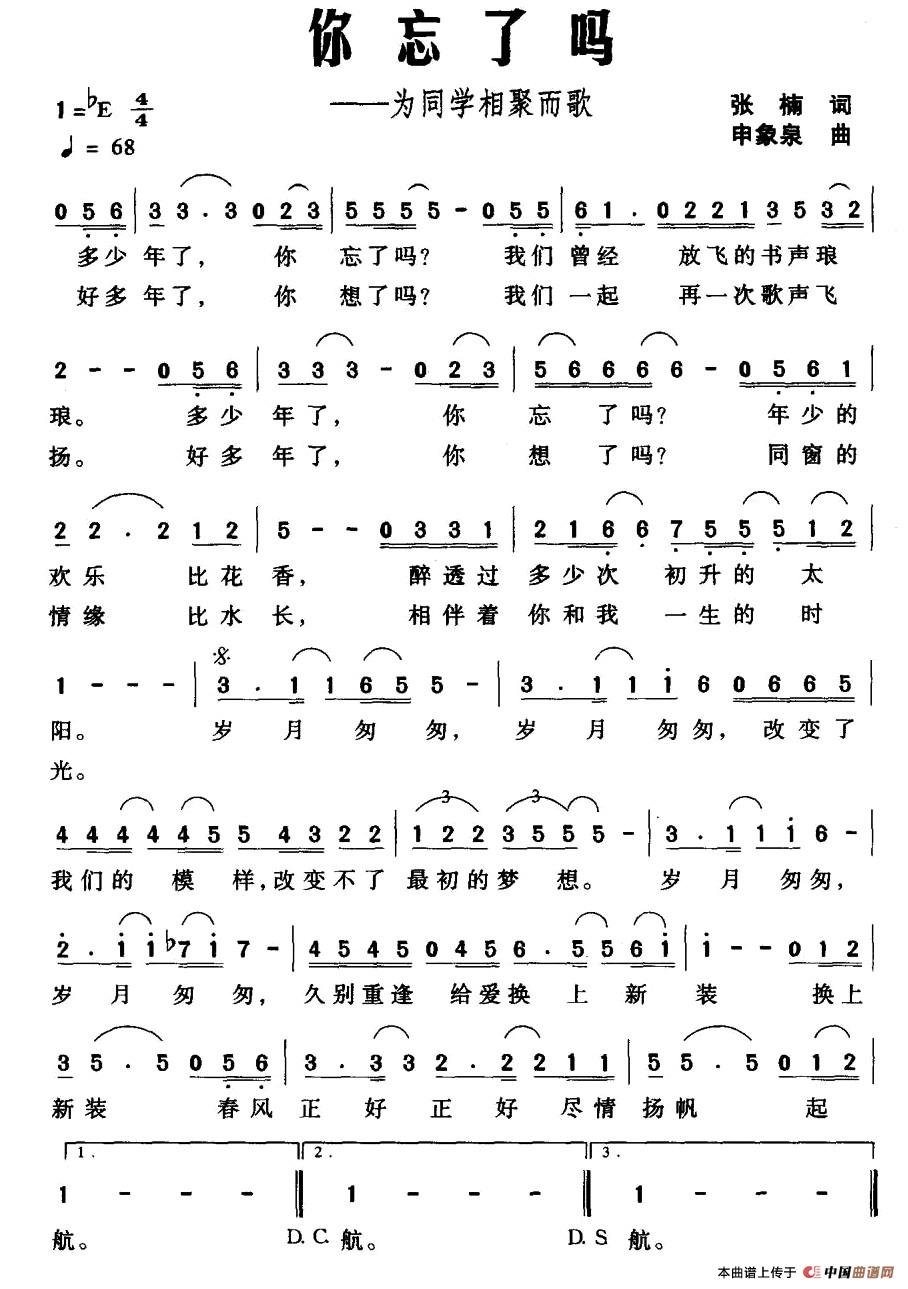 关于《你忘了吗》曲谱的评论