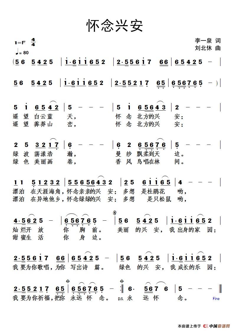 关于《怀念兴安》曲谱的评论