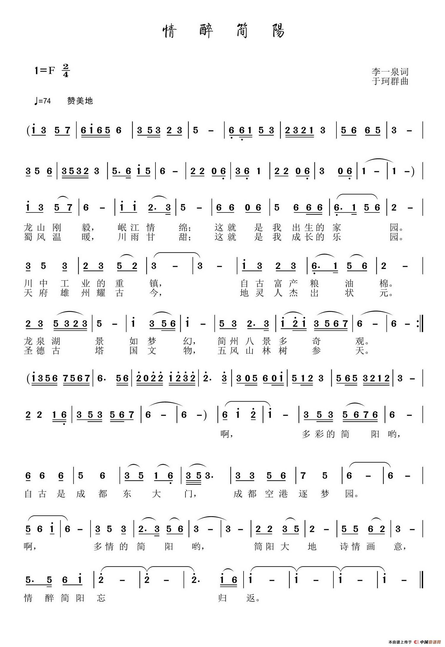关于《情醉简阳》曲谱的评论