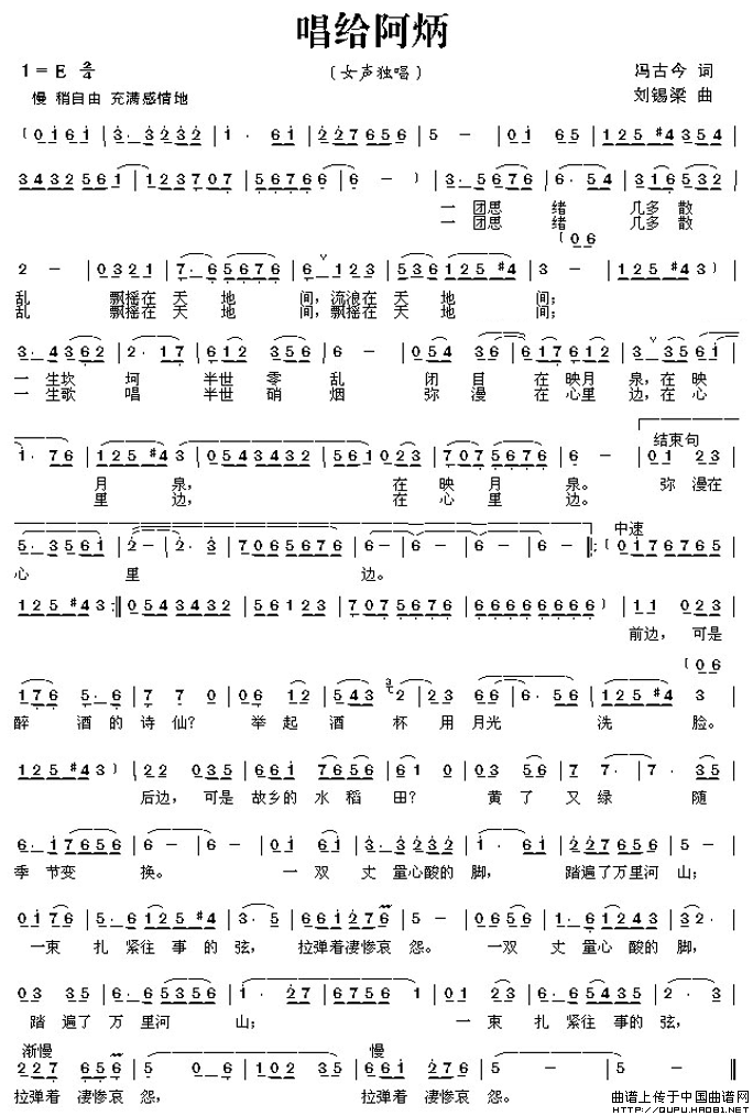 作词:冯古今   作曲:刘锡梁   格式:简谱   来源:作者上传《中国原创音乐基地》   上传:秋叶起舞   日期:2011-06-24   浏览次数:
