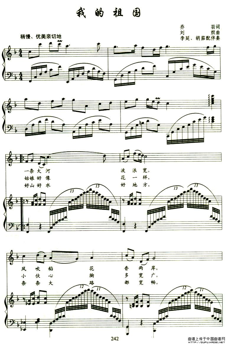 关于《我的祖国》曲谱的评论