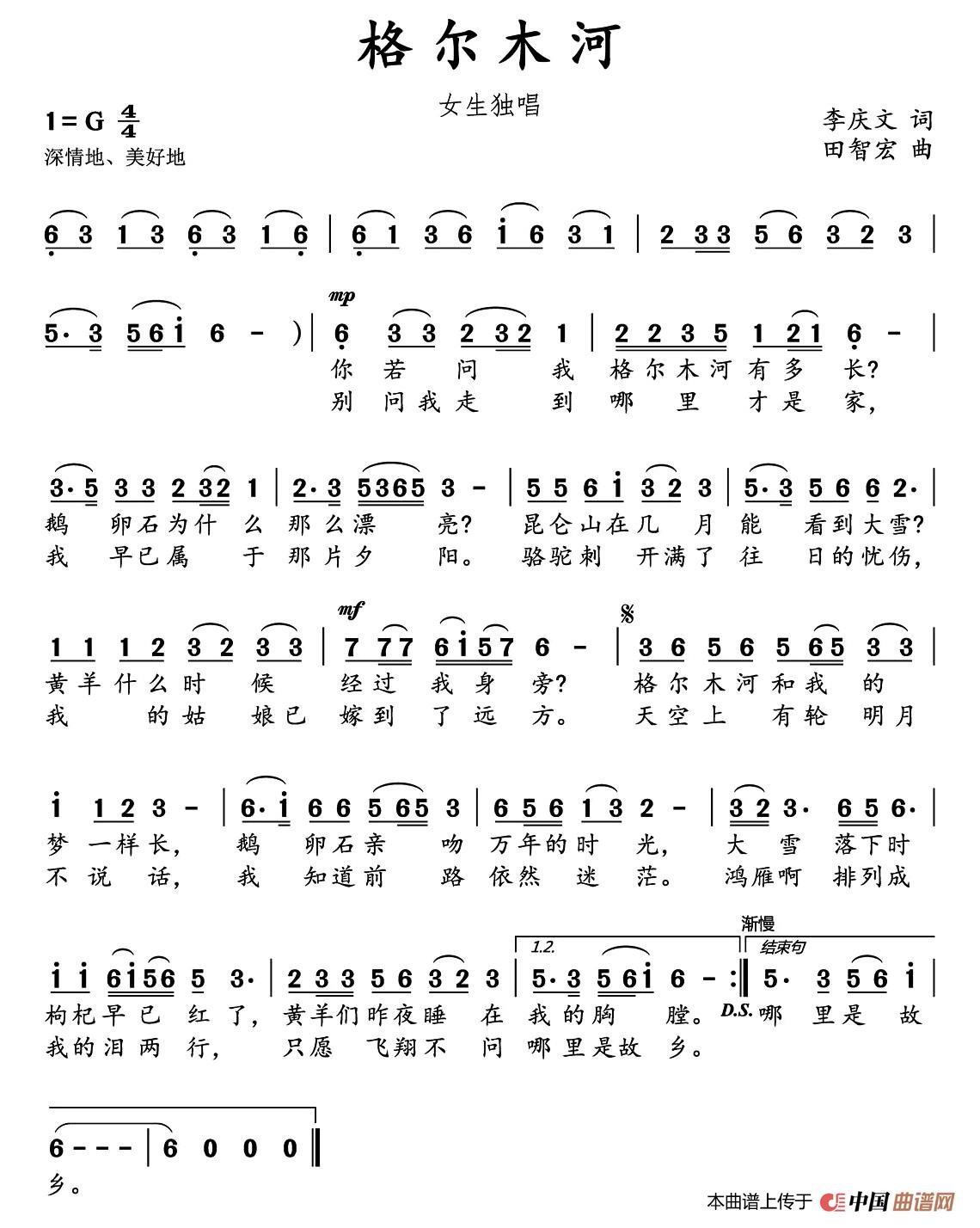 关于《格尔木河》曲谱的评论