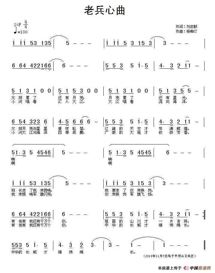 《老兵心曲》文本歌词