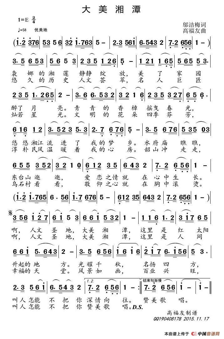 作词:邬洁梅 作曲: 高福友 编曲: 黄勇