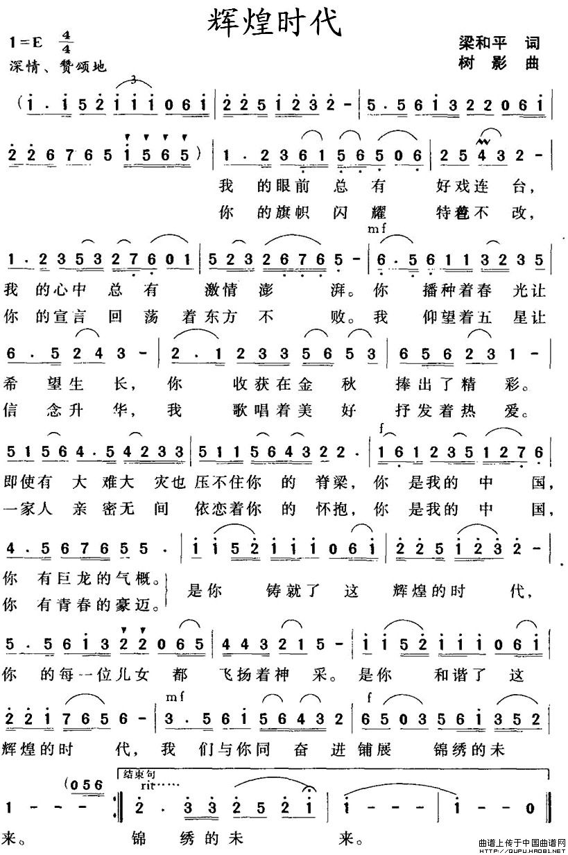 关于《辉煌时代》曲谱的评论