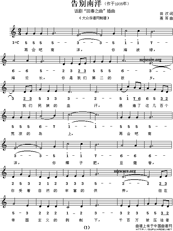 提示:在曲谱图片上单击右键,选择“图片另存为...”即可将曲谱保存到您的电脑中,打印时候可将图片插入到WORD中,调整合适大小打印即可。