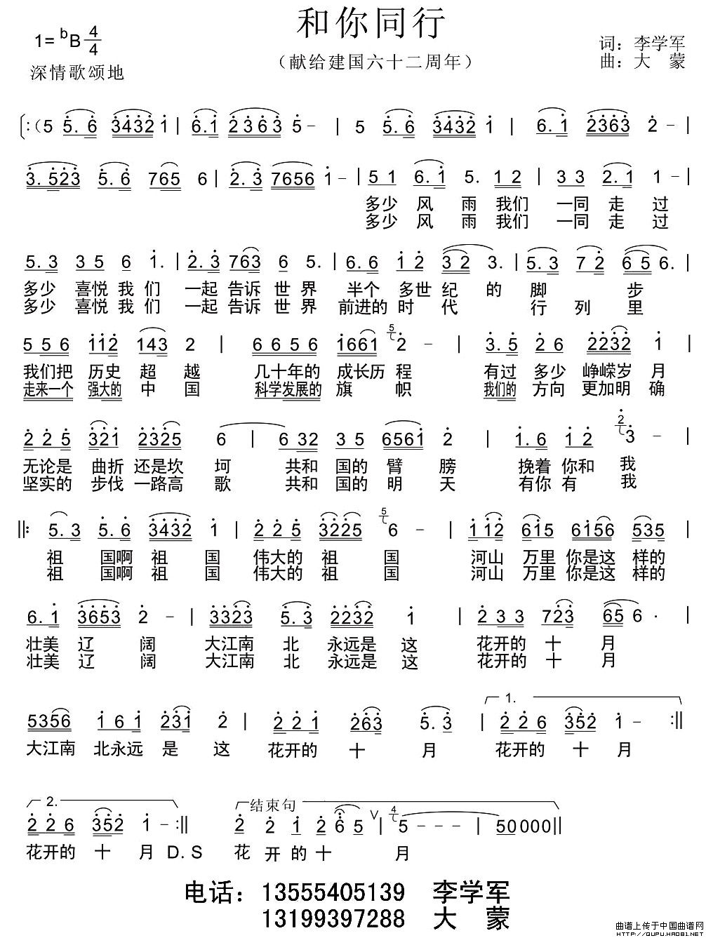关于《和你同行》曲谱的评论