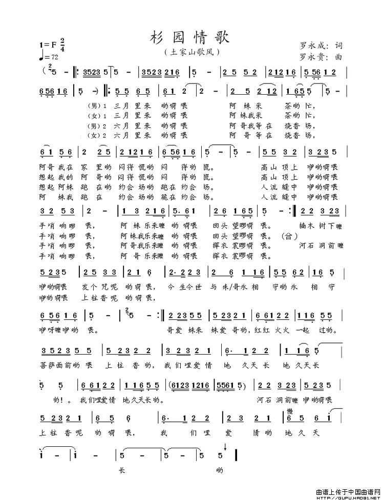 关于《杉园情歌》曲谱的评论