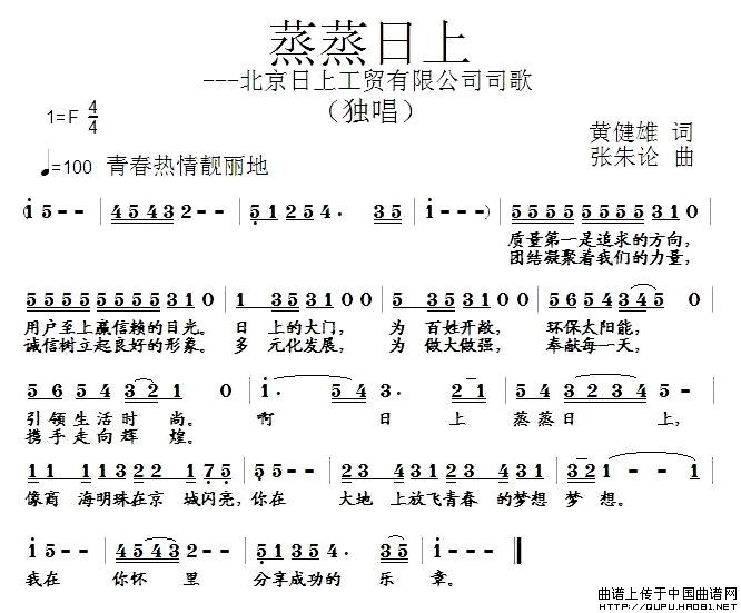 关于《蒸蒸日上—北京日上工贸有限公司司歌》曲谱的评论