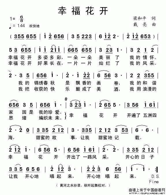 关于《幸福花开》曲谱的评论