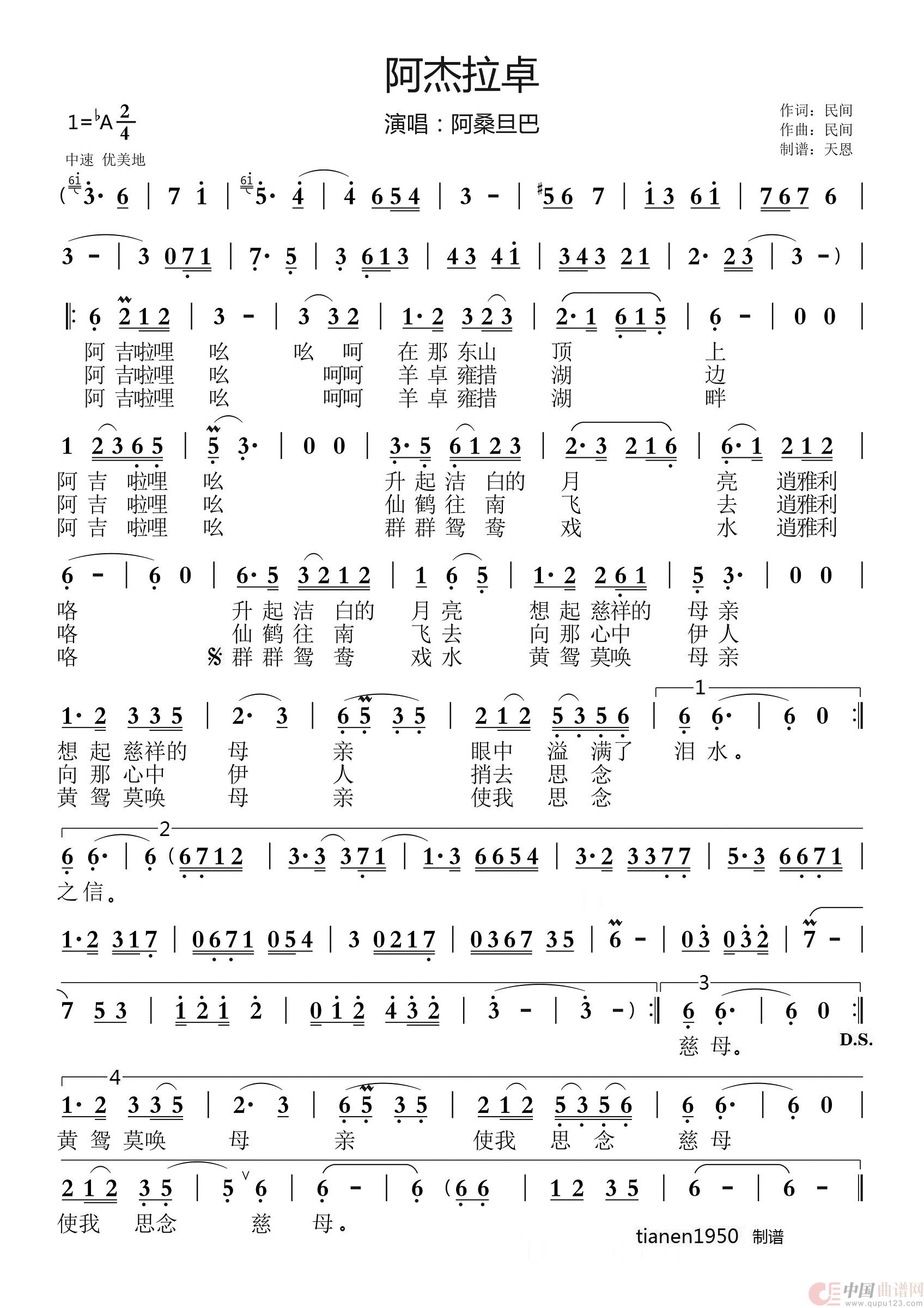 关于《阿杰拉卓 》曲谱的评论