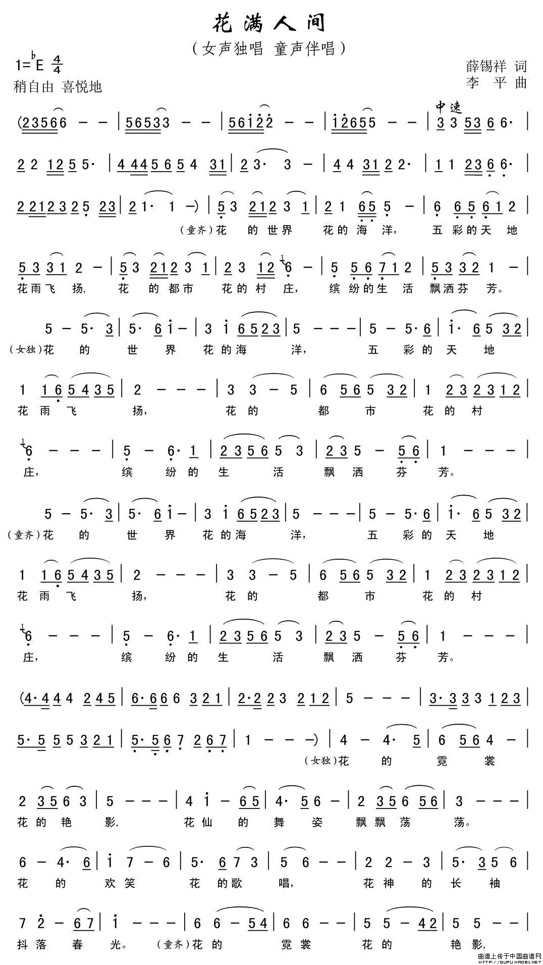 关于《花满人间》曲谱的评论