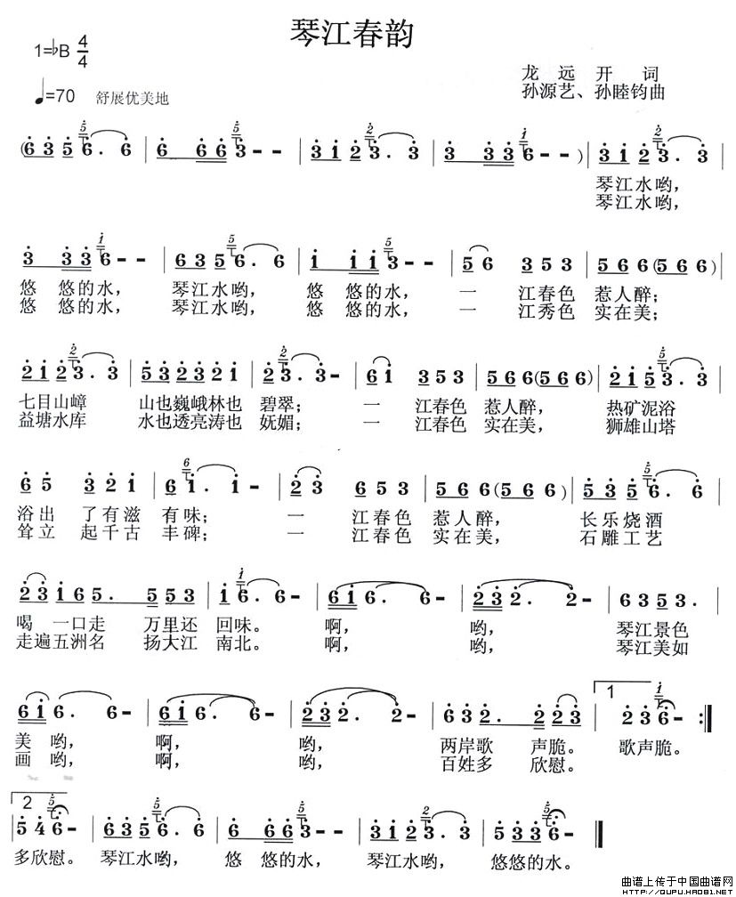 当前位置: 首页 民歌曲谱 四字歌名 琴江春韵(龙远开词 孙源艺曲)