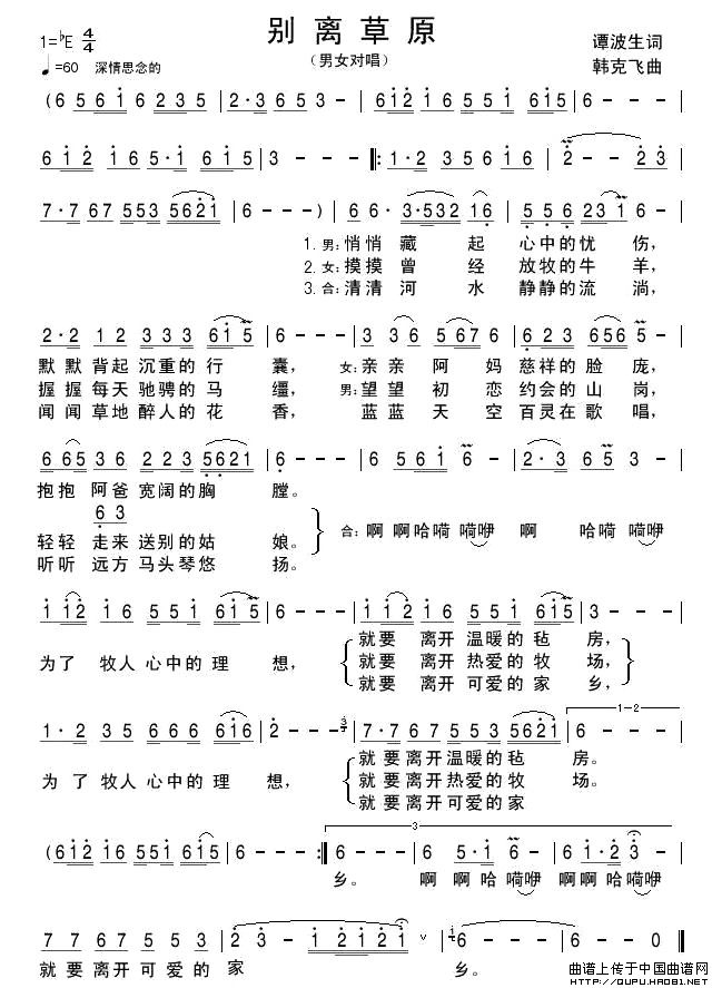 关于《别离草原》曲谱的评论