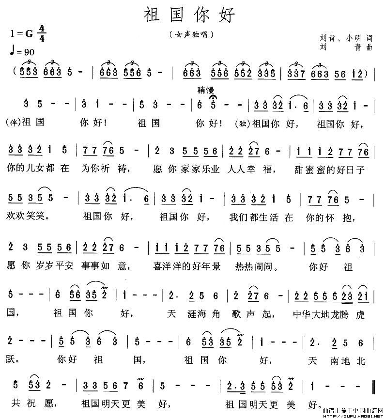 祖国你好(刘青、小明词 刘青...