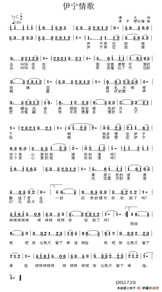 《伊宁情歌》旋律优美动听,已获得2012中国城市之歌赏评入围奖。(入围歌曲名单:http://www.citysong.cn/news-ari--29.html)人气排在入围歌曲的榜首。