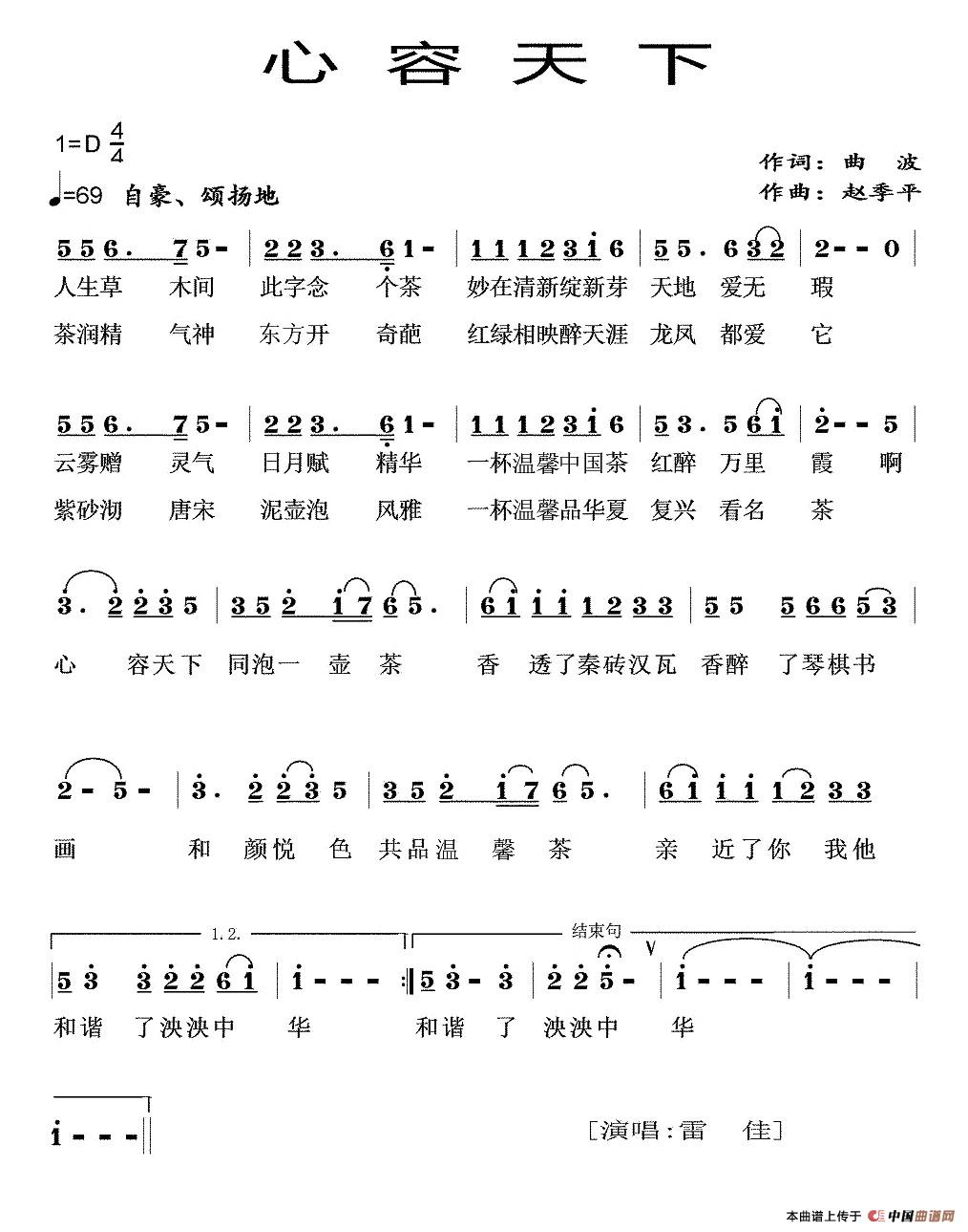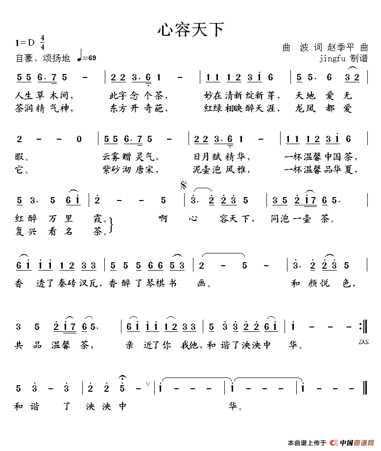 关于《心容天下》曲谱的评论