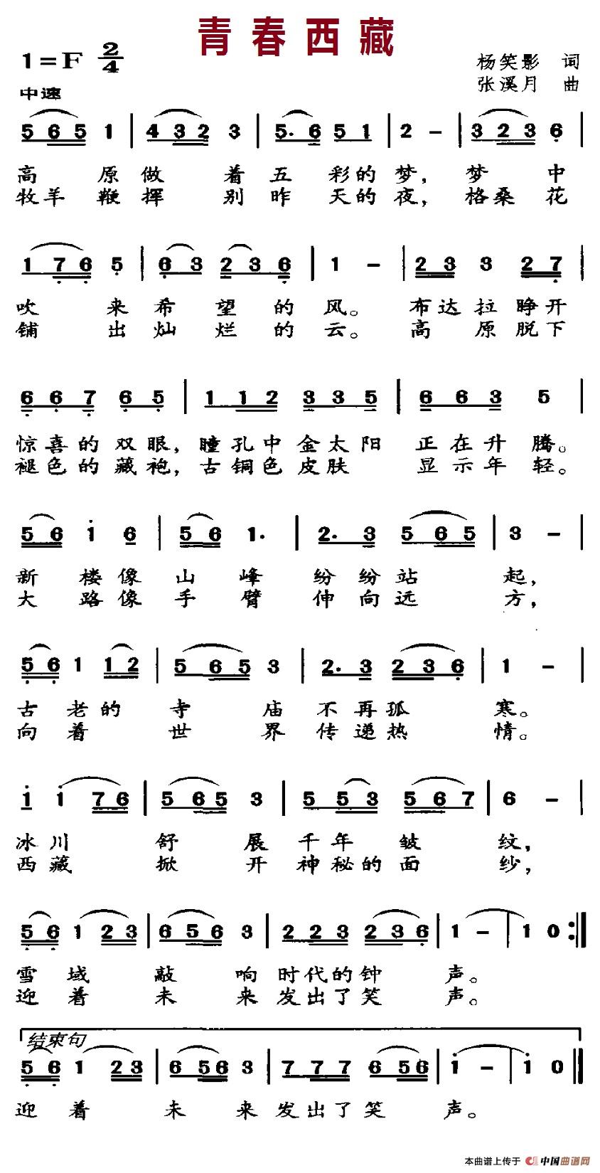 关于《青春西藏》曲谱的评论