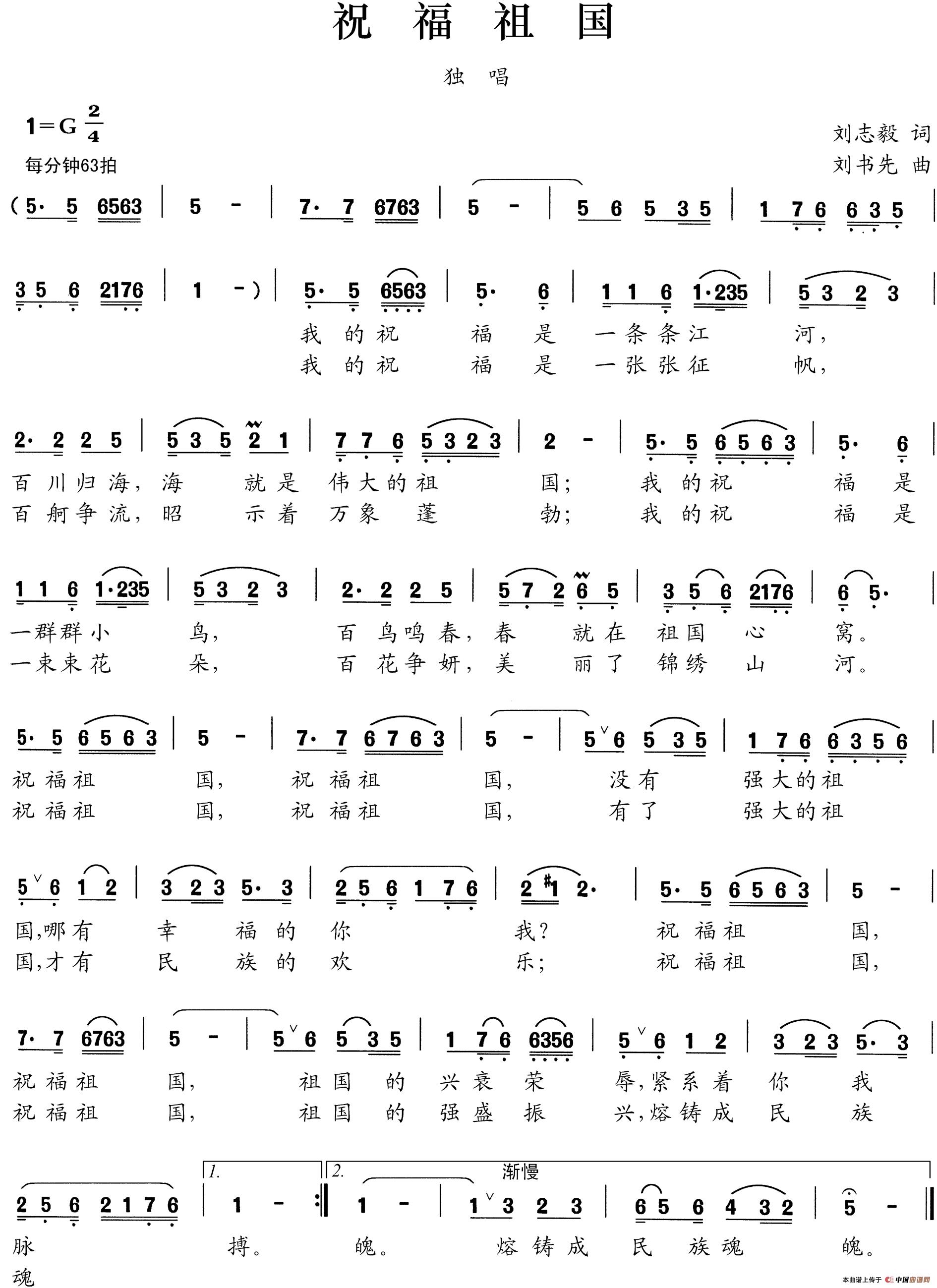 关于《祝福祖国》曲谱的评论