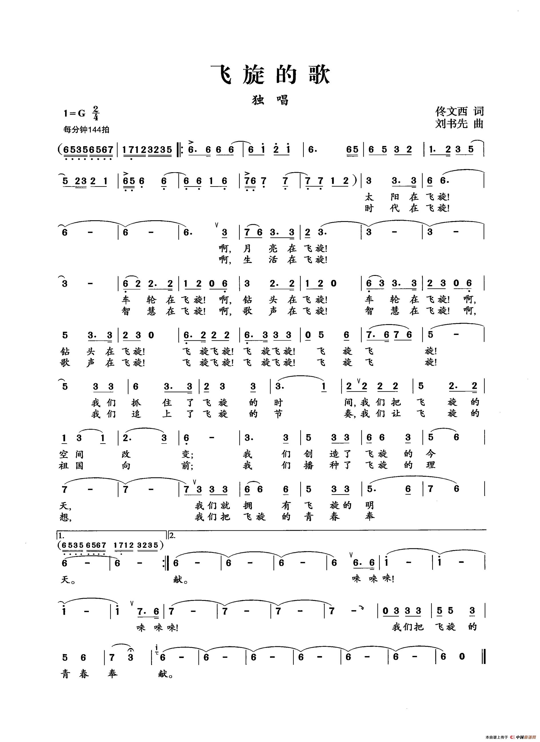 关于《飞旋的歌》曲谱的评论