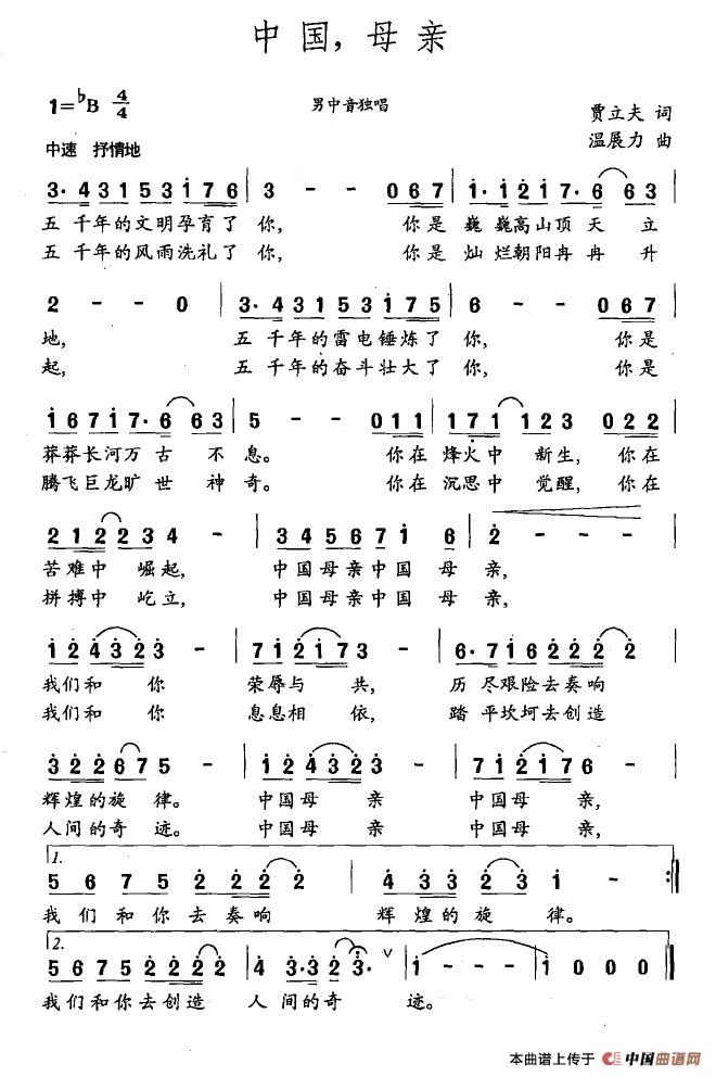 关于《中国,母亲》曲谱的评论