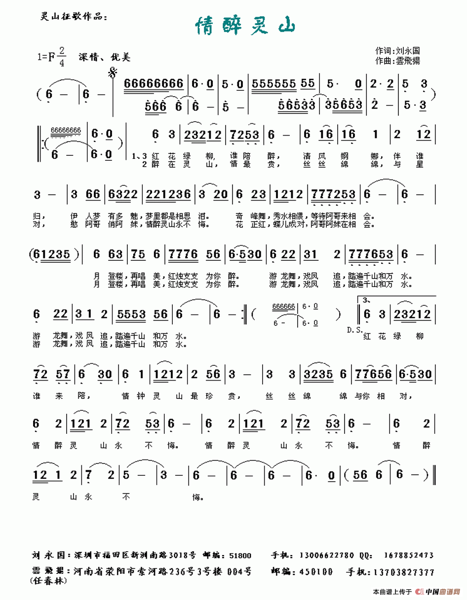 关于《情醉灵山》曲谱的评论