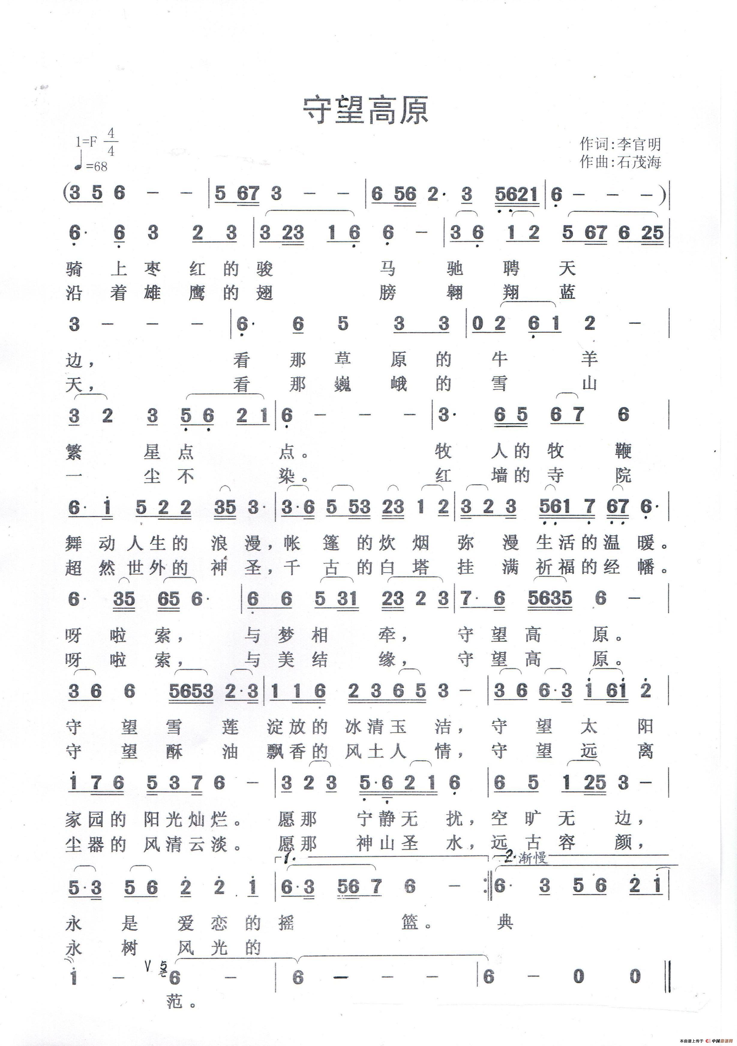 提示:在曲谱图片上单击右键,选择"图片另存为..."即可将曲谱保存到您的电脑中,打印时候可将图片插入到WORD中,调整合适大小打印即可。