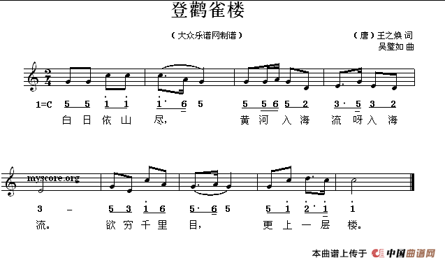 ![登鹳雀楼([唐]王之焕词 吴璧如曲、线简谱混排版)(1)_原文件名:111.gif](/Public/Uploads/d/0/51ac0a5428339.gif)