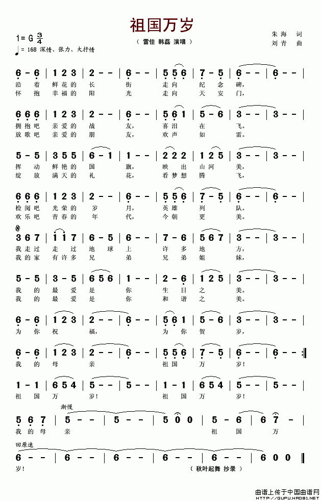 关于《祖国万岁》曲谱的评论