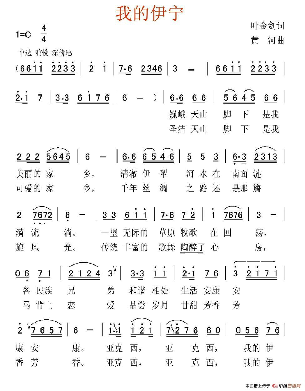 关于《我的伊宁》曲谱的评论