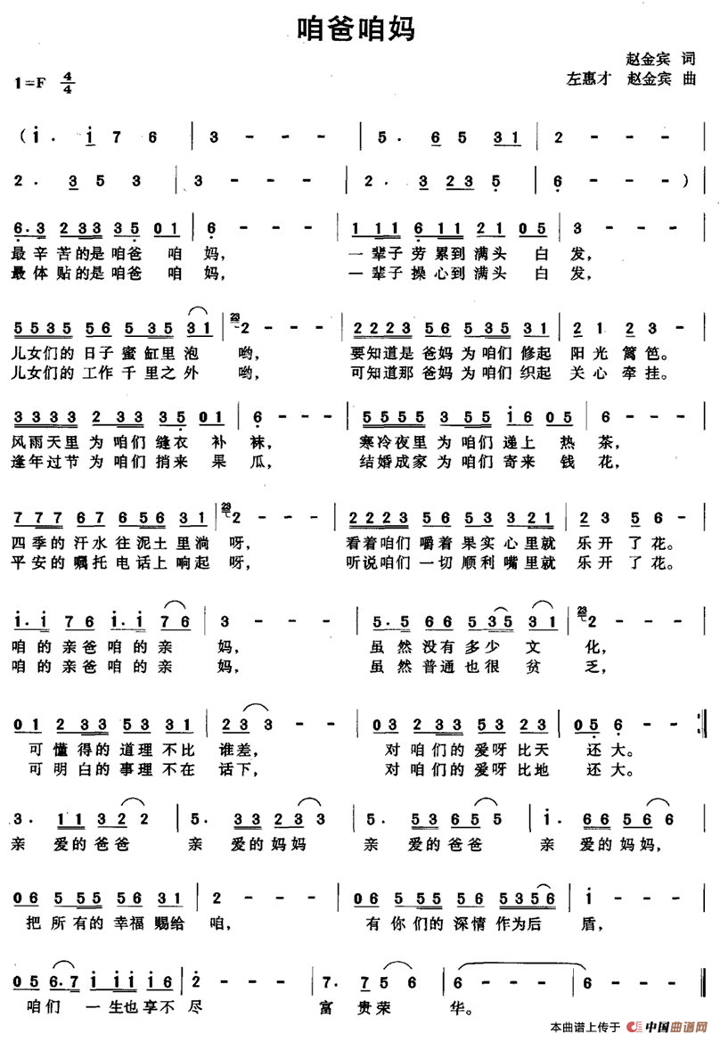 咱爸咱妈(赵金宾词 左惠才 赵金宾曲)