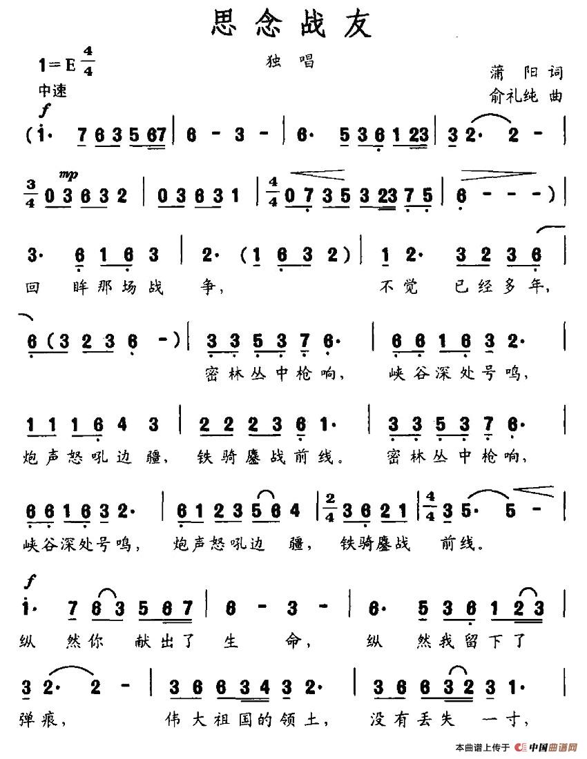关于《思念战友》曲谱的评论