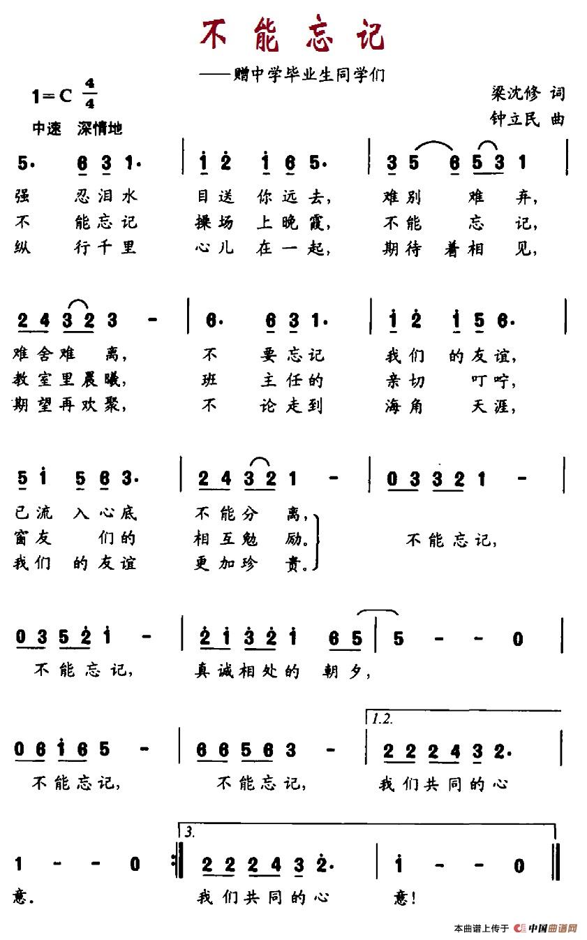 关于《不能忘记》曲谱的评论