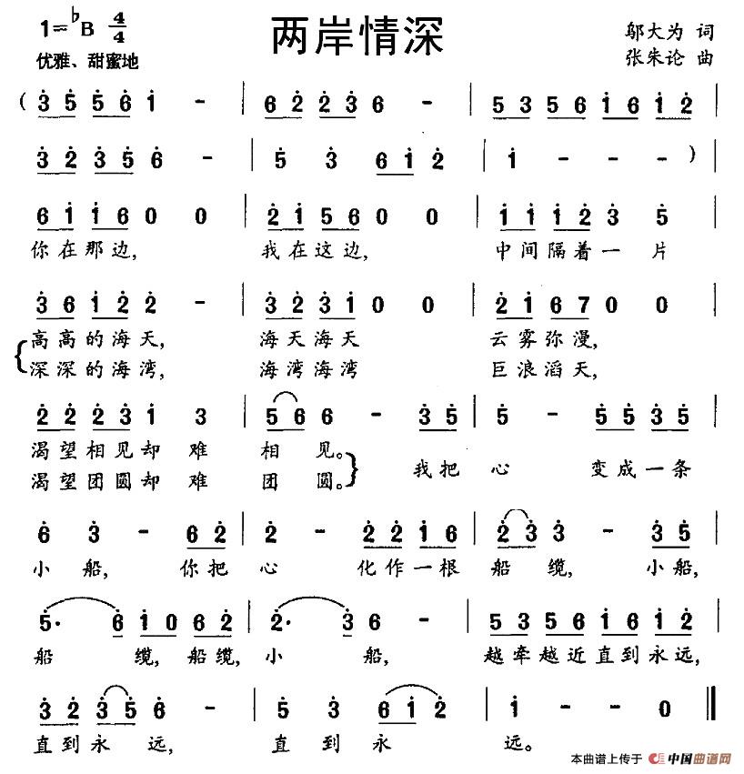 关于《两岸情深》曲谱的评论