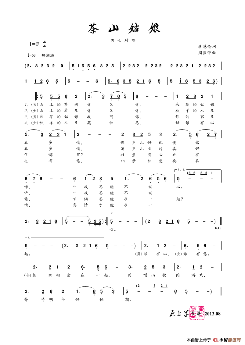 茶山姑娘(李慧伦词 周蓝萍曲)(1)_原文件名:茶山姑娘.png