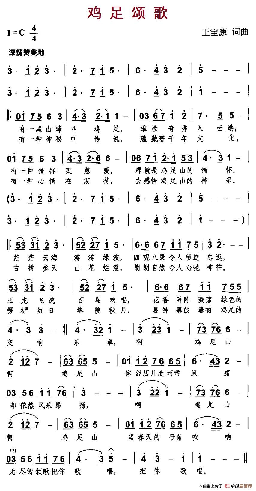 关于《鸡足颂歌》曲谱的评论