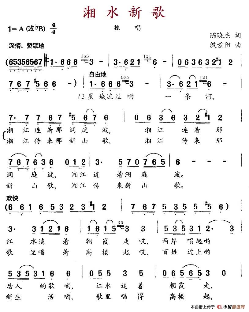 关于《湘水新歌》曲谱的评论