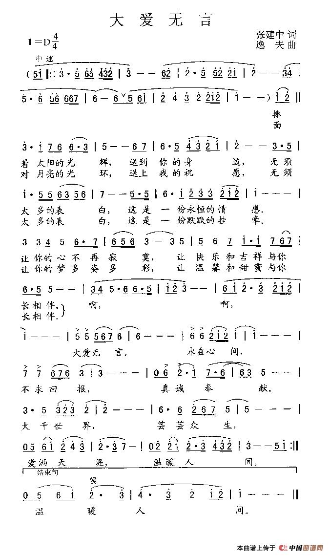 关于《大爱无言》曲谱的评论
