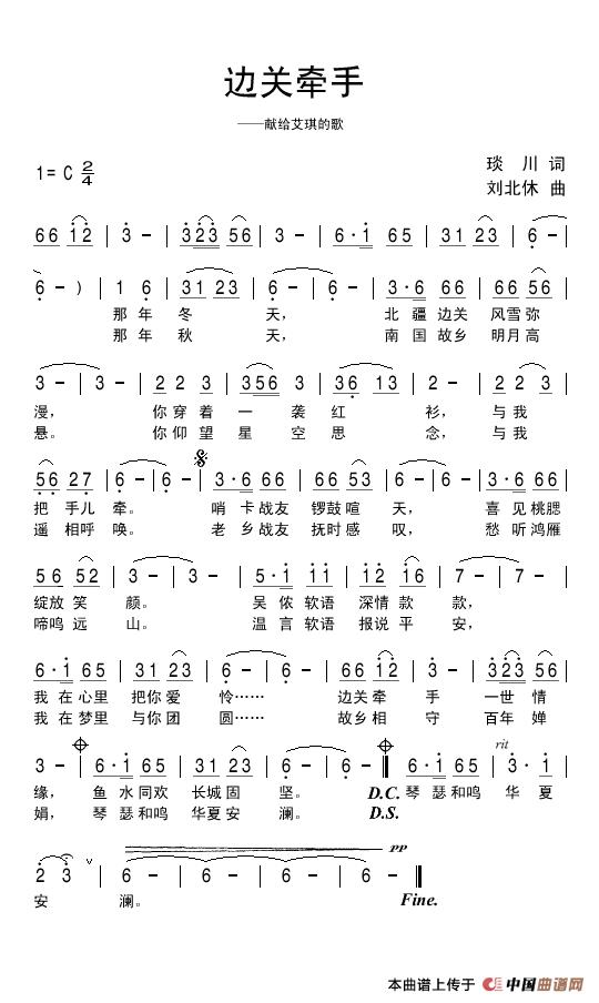关于《边关牵手》曲谱的评论