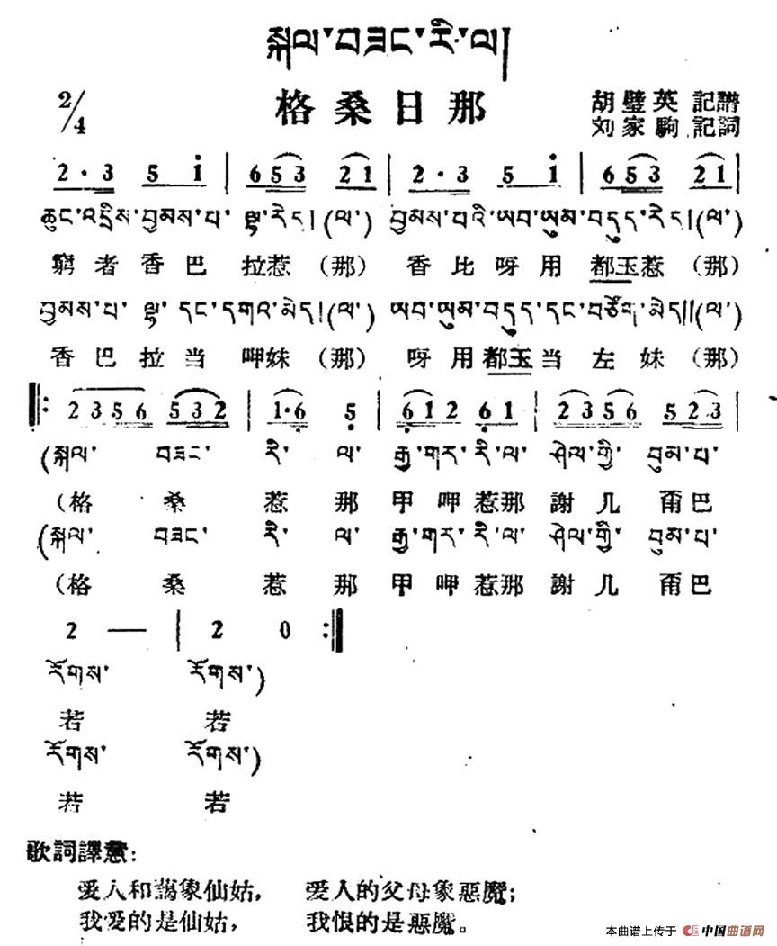 来源:《藏族民间歌曲选》 上传:秋叶起舞