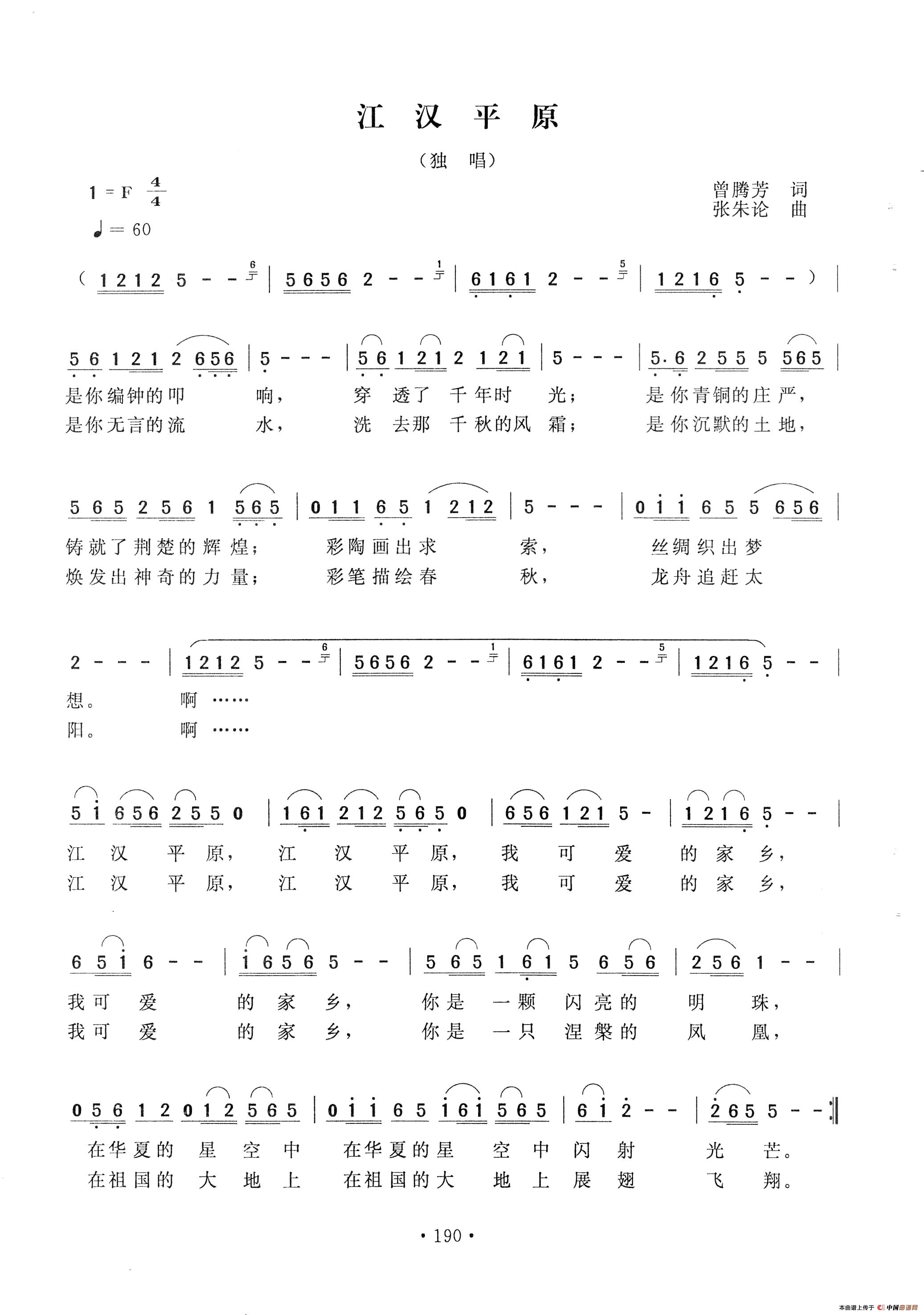 关于《江汉平原》曲谱的评论