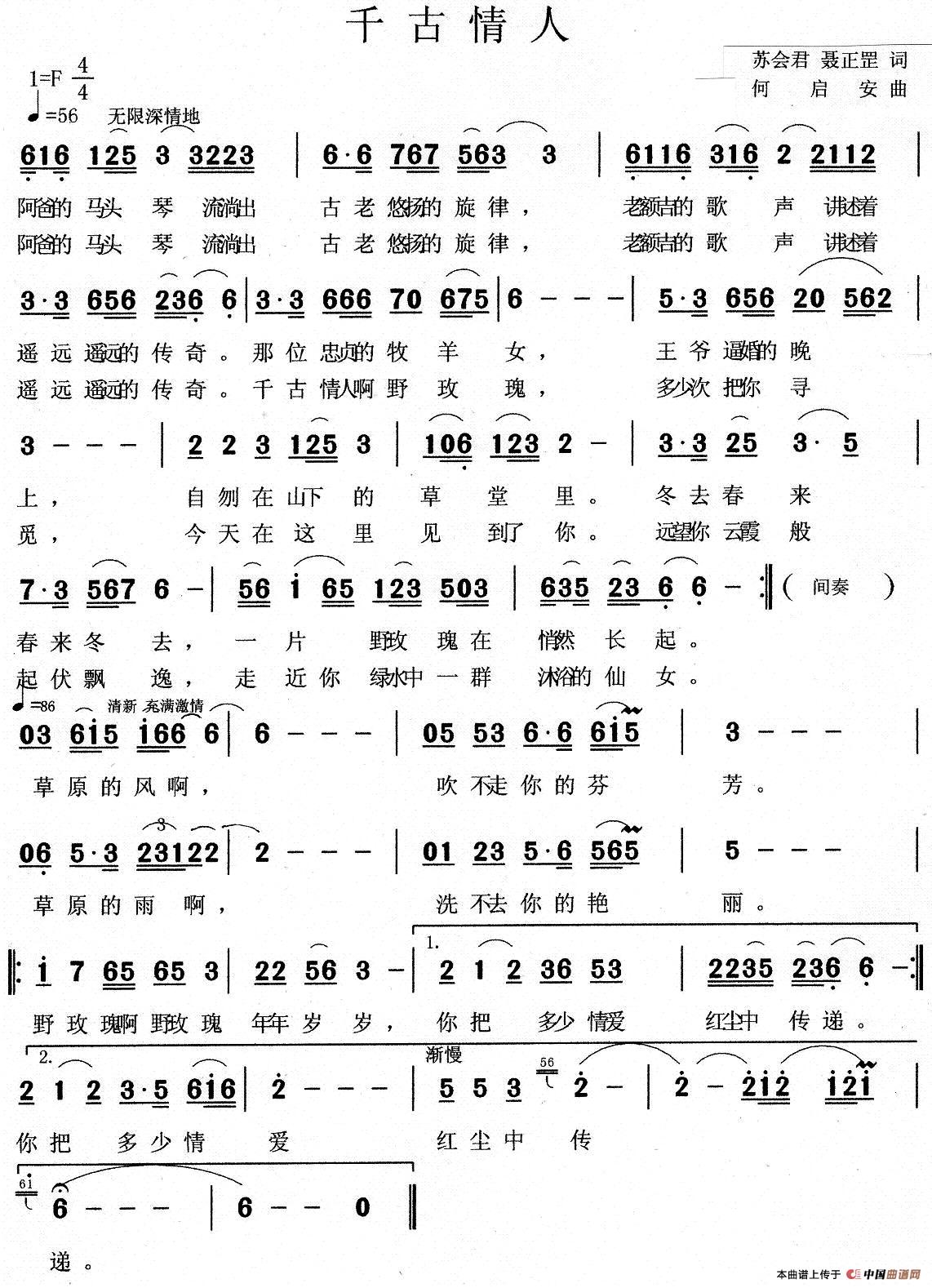 关于《千古情人》曲谱的评论