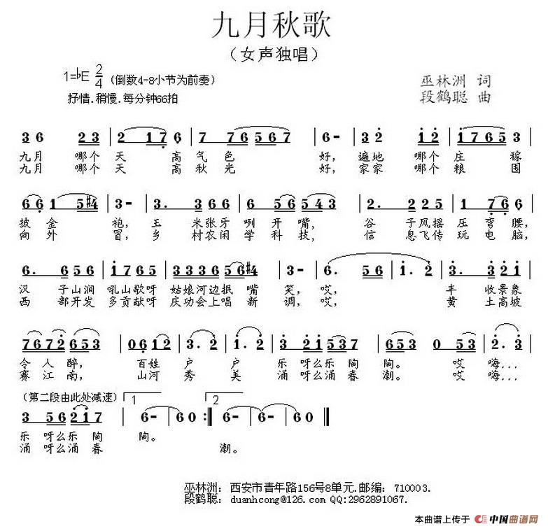 关于《九月秋歌》曲谱的评论