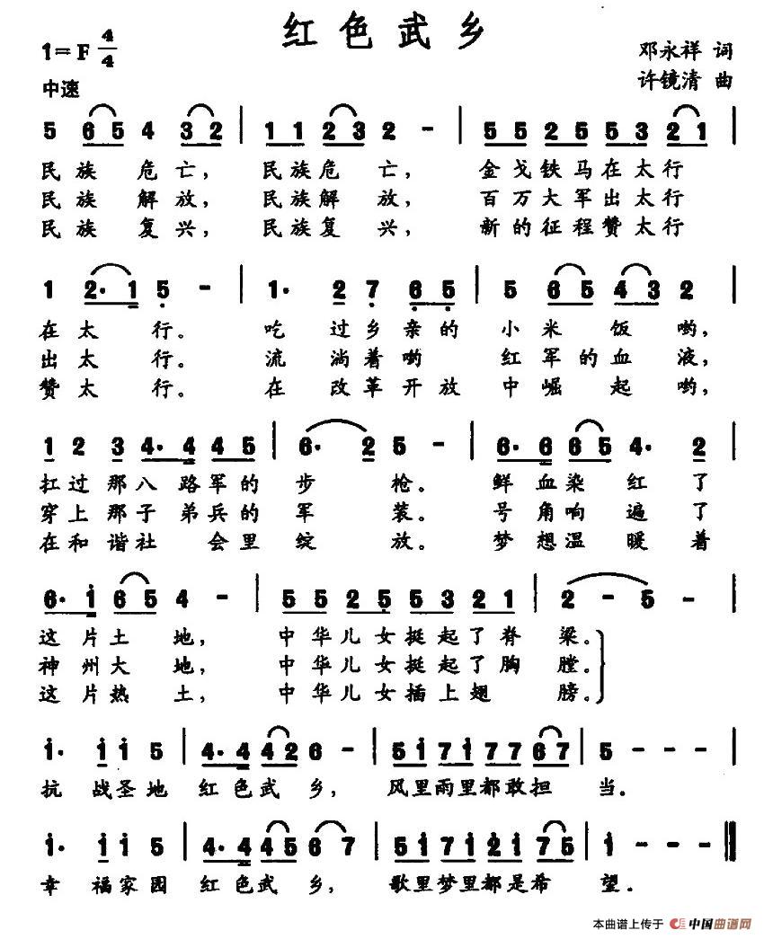 关于《红色武乡》曲谱的评论