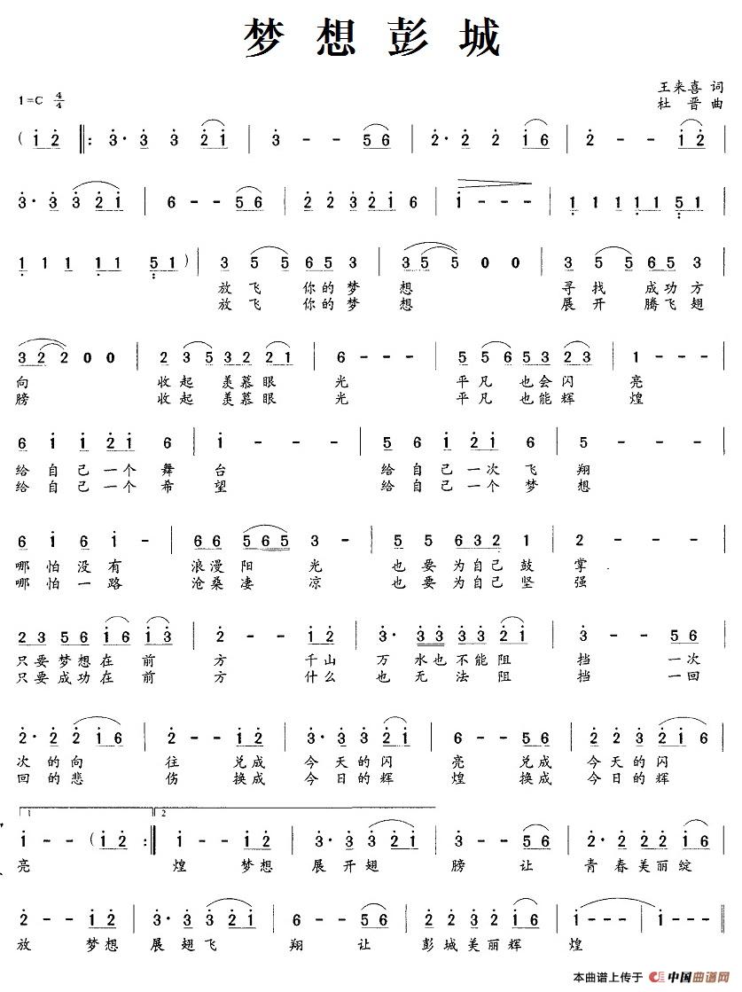作词:王来喜 作曲:杜晋 来源:中国曲谱网 上传:北京娃娃