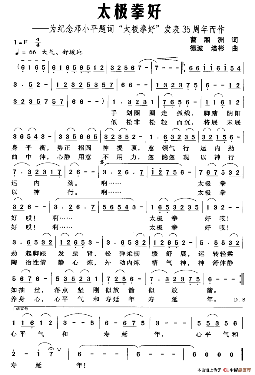 关于《太极拳好》曲谱的评论