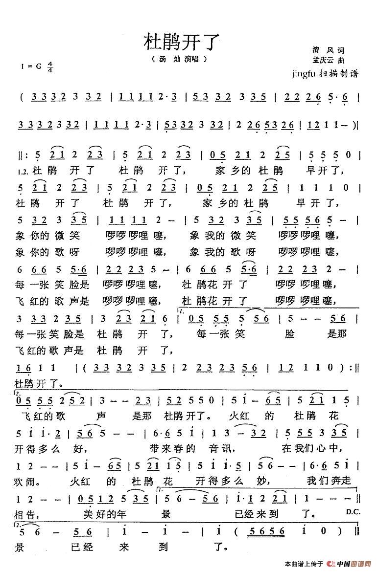 关于《杜鹃开了》曲谱的评论